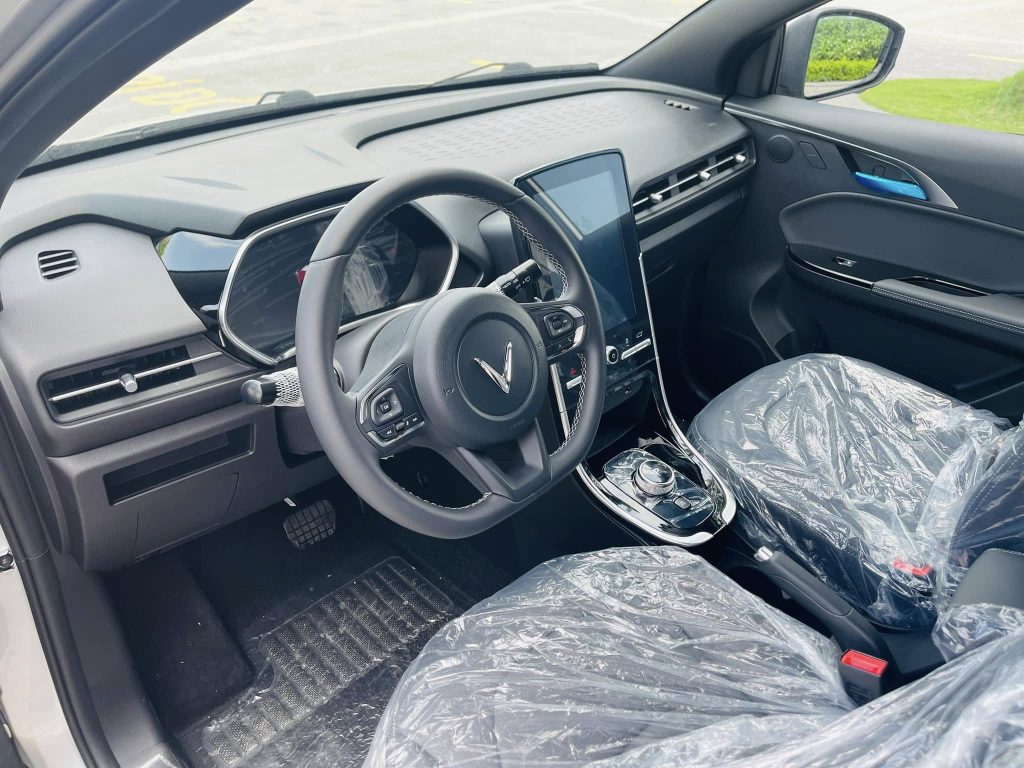 Thiết kế nội thất Nerio Green gần như kế thừa toàn bộ từ VF e34 với màn hình giải trí trung tâm đặt dọc, nối liền bảng điều khiển trung tâm, tạo thành dạng thác nước cá tính. Vô-lăng vát đáy thể thao tích hợp các phím bấm chức năng. Phía sau bố trí đồng hồ thông tin.